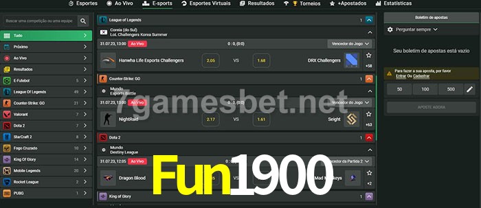A aposta Fun1900 oferece aos jogadores a experiência mais conveniente de apostas em eSports!